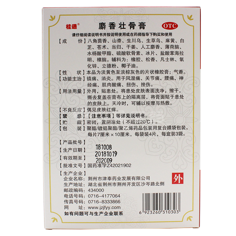 【成 份】麝香、豹骨、生川乌、生草乌、麻黄、白芷、当归、八角茴香、山奈、冰片、樟脑、薄荷脑等18味。