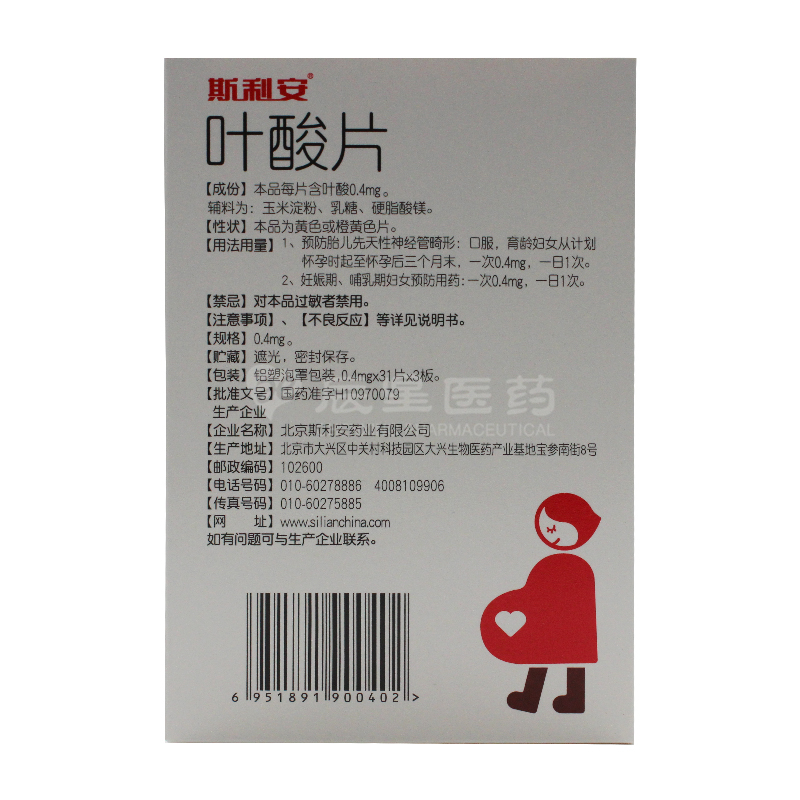 【主要成份】本品每片含主要成份叶酸0.4毫克。辅料为淀粉、乳糖、硬脂酸镁。