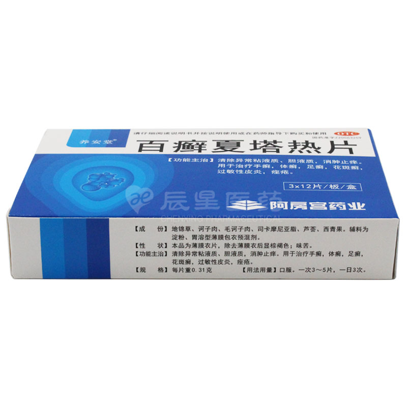 【注意事项】1.忌烟、酒及辛辣、油腻食物。2.患有慢性腹泻、痢疾不宜服用百癣夏塔热片,其表现为大便次数增多及经常腹泻,里急后重,脓血便。3.按照用法用量服用;儿童、孕妇及哺乳期妇女应在医师的指导下服用。4.儿童必须在成人监护下使用。5.长期服用,应向医师咨询。6.对本品过敏者禁用,过敏体质者慎用。7.本品性状发生改变时禁止使用。8.请将本品放在儿童不能接触的地方。9.如正在使用其他药品,使用百癣夏塔热片前请咨询医师或药师。