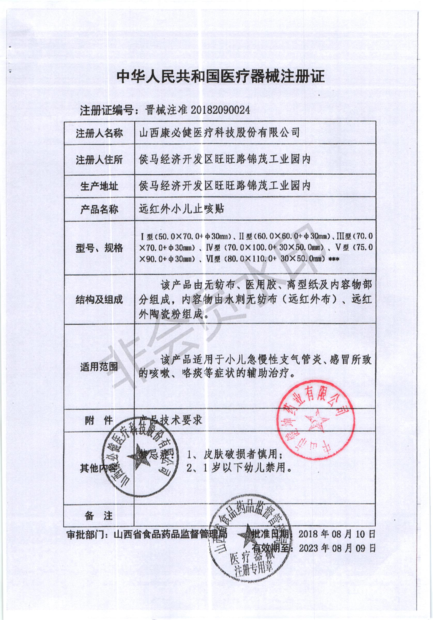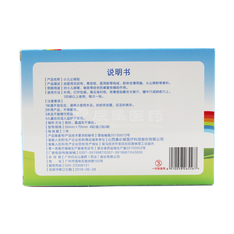 【适用范围】小儿止咳贴对小儿咳嗽、喘息等症状的康复有辅助作用。