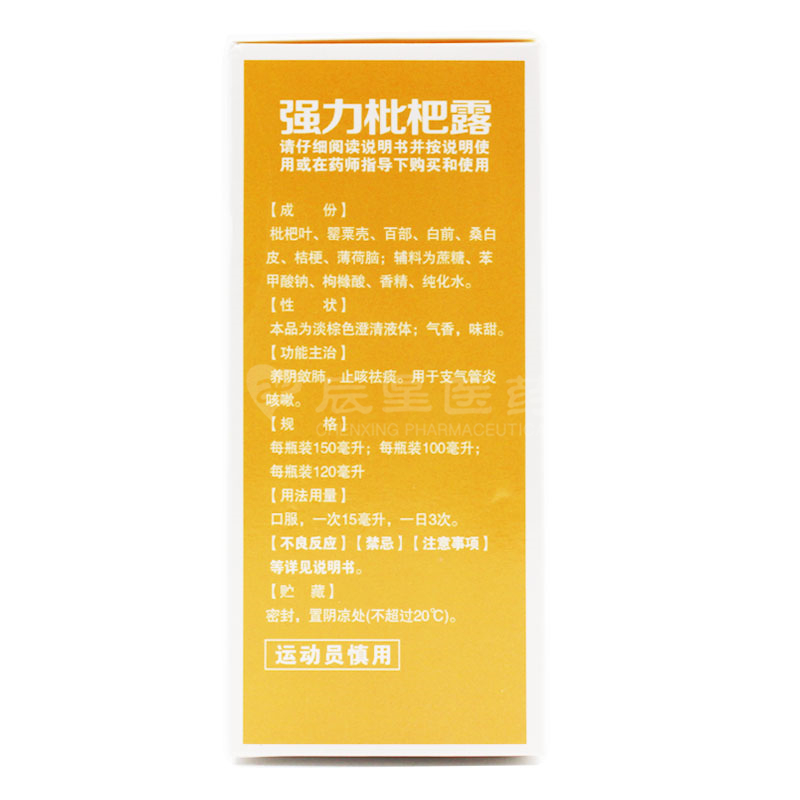 【主要成份】 枇杷叶、百部、前胡、桔便、桑白皮、薄荷脑;辅料为蔗糖、苯甲酸、柠檬酸、杏仁香精、杨梅香精,纯化水。
