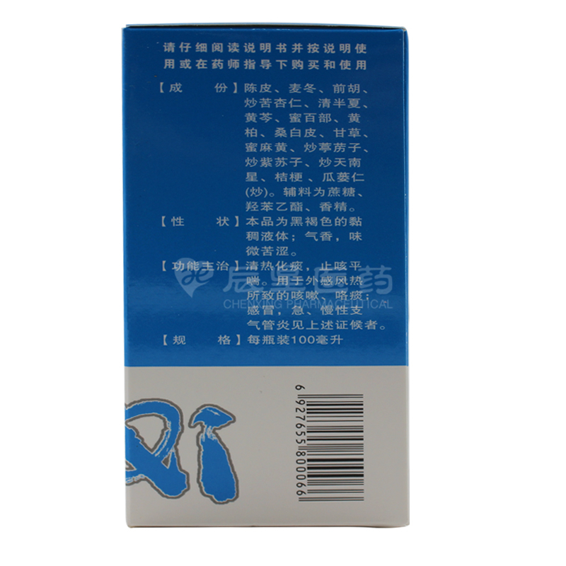 【成 份】陈皮、麦冬、前胡、苦杏仁(炒)、清半夏、黄芩、百部(蜜炙)、黄柏、桑白皮、甘草、麻黄(蜜炙)、葶苈子(炒)、紫苏子(炒)、天南星(炒)、瓜蒌仁(炒)、桔梗、瓜蒌仁(炒)。辅料为蔗糖、苯甲酸钠、香精。