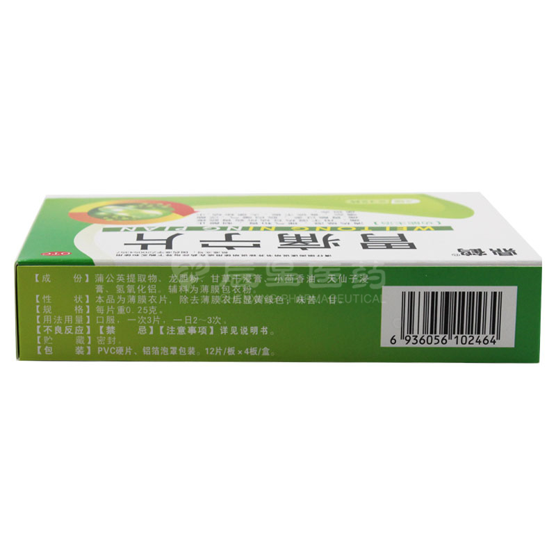 【成 分】本品主要成分为蒲公英提取物、氢氧化铝、甘草干浸膏、天仙子浸膏、龙胆粉、小茴香油。辅料为淀粉或糊精、糖、食用色素、滑石粉、桃胶、硬脂酸镁。