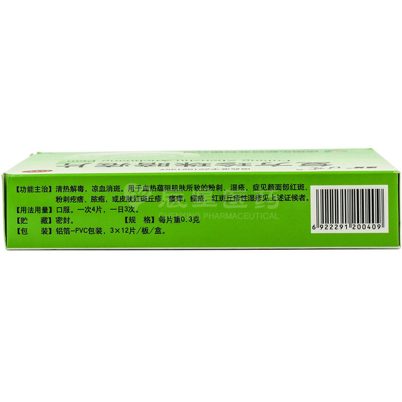 【适应症/功能主治】清热解毒,凉血通脉。用于消除青年脸部痤疮(俗称暗疮)及皮肤湿疹、皮炎。
