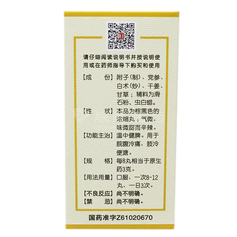 【成 份】附子(制)、党参、白术(炒)、干姜、甘草。