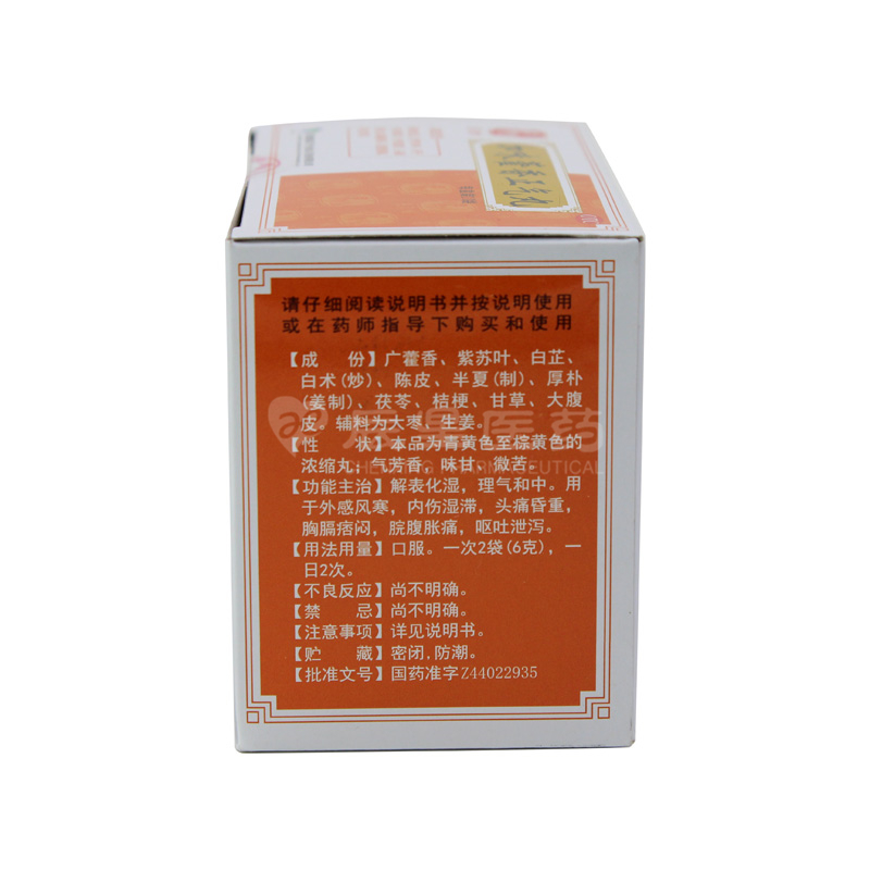 【成 份】广藿香、紫苏叶、白芷、白术(炒)、陈皮、半夏(制)、厚朴(姜制)、茯苓、桔梗、甘草、大腹皮。辅料为大枣、生姜。
