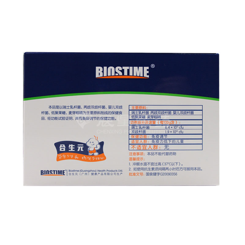 【主要原料】瑞士乳杆菌,两歧双歧杆菌,婴儿双歧杆菌,低聚果糖,麦芽糊精。